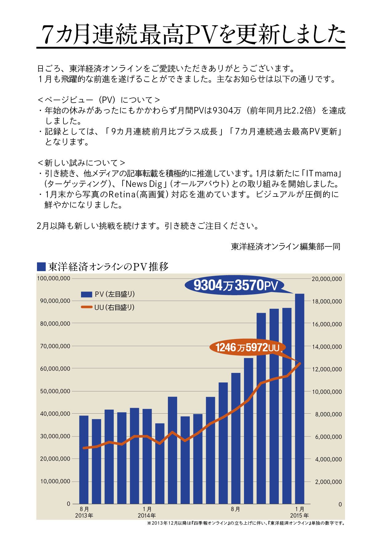 【New】7カ月連続最高PVを更新しました