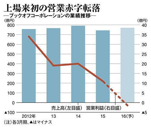 中古本販売チェーンという新業態を日本で確立した、ブックオフコーポレーション。一世を風靡した同社が、2016年3月期に営業利益で1.5億円の赤字に陥ることになった。営業赤字となるのは、2004年の上場以来、初めてのことだ。