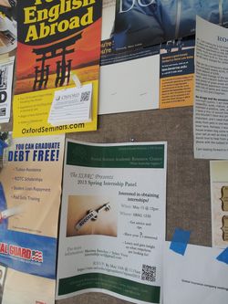 私が取材に訪れた時には、学生たちとその両親がガラスのケース越しに、陽光の下で丹念に張り紙を読んでいた。ユーザー評価サイトとして有名なヤルプやノキアが、工学部の3年生を対象に時給20ドルで夏のインターンを募集していた。赤十字やブリッジポート・エジュケーションなどの機関からの募集の張り紙もある。