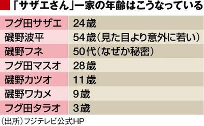 同じことがマスオさんにも言えて、マスオさんは28歳ですが、やっぱり年齢不詳。早稲田大学卒業の商社マンですが、家庭内でのサザエさんとの力関係は明白。世の中の男性視聴者は、マスオさんに自分を重ねて見ているのではないかと思います。