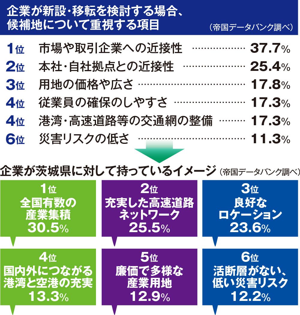 これらの取り組みに対する影響はすでに出始めており、茨城県内ではつくば関城工業団地(筑西市)、結城第一工業団地矢畑地区(結城市)、つくば下妻第二工業団地(下妻市)などの工業団地が、いずれも短期間で完売している。県は高まるニーズに応えるために、圏央道沿線における産業用地の開発を支援するほか、優遇制度の充実を図るなどして、今後もさらに立地環境の整備を進めていく考えだという。
