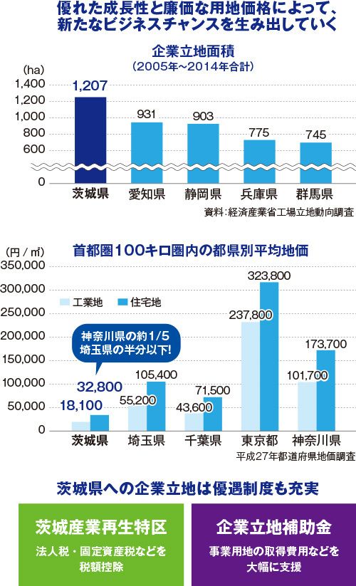 茨城県への企業の進出が相次いでいる。大手企業の大規模な製造拠点、物流拠点のみならず中堅企業やベンチャー企業までもがこぞって茨城県を選んでいるのである。