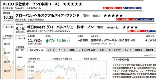 モーニングスターのHPでは、ファンド名のすぐ横に星の数が示され、一目でレーティングがわかるようになっている