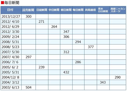 筆者は、代表紙(毎日、朝日、読売、日経)のバックナンバーを確認した。そして記事の文字数を確認していった。記事は東京版の朝刊を基本とし、2000年から過去の記事を調べてみた。