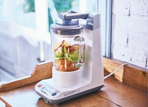 テスコム「真空ミキサー TMV1100」は、ボトル内の空気を抜いて真空にし、酸素が限りなく少ない状態でスムージーを作れる。食材の酸化を防ぐメリットがあり、従来のミキサーよりも鮮度と栄養が高い調理ができるのが魅力。真空保存用スムージーボトルもあり、鮮度を保ったままスムージーを保存できる。