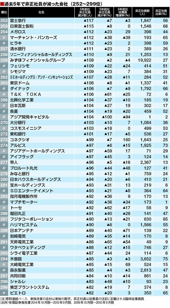 政治・経済・投資 「非正社員数を減らした」300社ランキング 上位はリストラと正社員転換の企業が混在 3分で読める 公開日時:2016/03/07 06:00 田中 久貴 東洋経済データ事業局 フォロー 1/7 PAGES 2/7 PAGES 3/7 PAGES 4/7 PAGES 5/7 PAGES 6/7 PAGES 7/7 PAGES