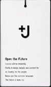 そのブランドネームが記された製品タグには「Open the Future」と題された、メッセージが記されている。