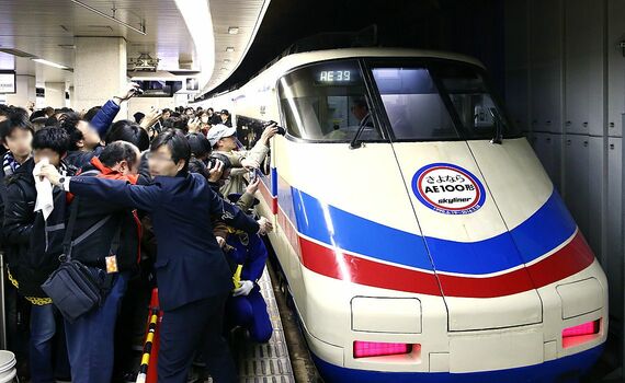かつて京成電鉄の「スカイライナー」として名を馳せた「AE100形」が2月28日に引退した。同日8時。日曜にもかかわらず、朝の京成上野駅は成田国際空港に向かう観光客に加え、AE100形の最後の勇姿を見るためのツアー参加者であふれかえっていた。