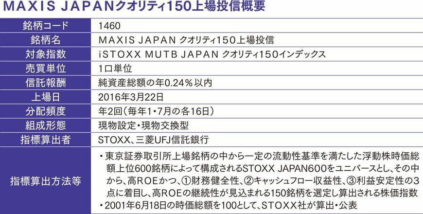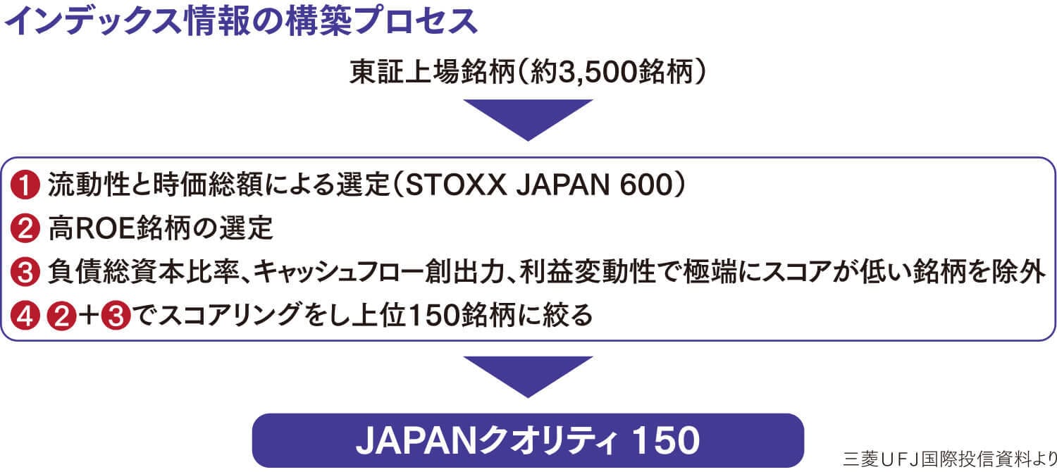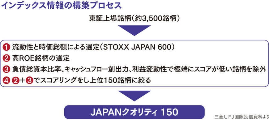 そこで、今回のETFが連動を目指す指数は、STOXX社と三菱UFJ信託銀行によって新たに構築された指数「iSTOXX MUTB JAPANクオリティ150」だ。