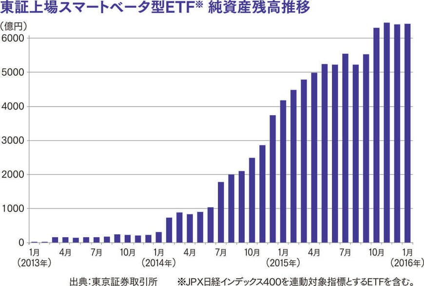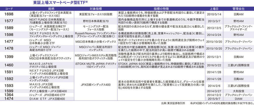 実際、ETFのマーケットは拡大している。内国ETFの純資産残高は16兆円規模まで拡大し、売買代金も日を追うごとに増加している(下表参照)。「今回の上場でETFの銘柄数は196になりました。連動対象となる指数も、TOPIXをはじめとする日本株から、外国株、外国債券、REIT、金などの商品までラインナップも拡充されています」と語るのは東京証券取引所・上場推進部調査役の高木亮氏。「ETFの存在感が高まる中で、スマートベータ型という新たなコンセプトのETFに注目が集まってきています」と続ける。