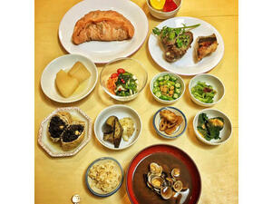夜遅くまで残業することもあるが、自宅に戻ってからは母の作る手料理を食べて一息つく。「まごわやさしい(※)」の法則を基に、バランスに気を付けて作られた料理が、今のヘルスコンシャスなライフスタイルに繋がっている。