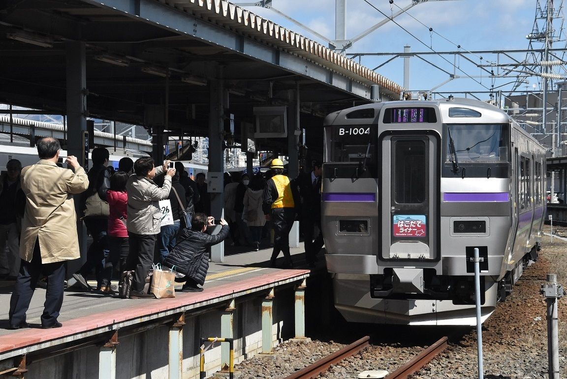 北海道新幹線への接続列車として投入された「はこだてライナー」は、H5系に合わせたデザインが人気を呼び、多くの乗客がその姿をカメラに収めていた。ロングシートで3両編成の車両は、発車間際にはいっぱいになり、新函館北斗までの19分の時間は、浜松町から羽田空港までのモノレールを思い起こさせた。