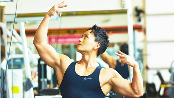 計算尽くされたシンメトリーの身体美を追求し、和久井拓は今夜もゴールドジム 原宿東京店に足を運ぶ。