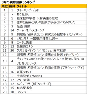 他方、3月11日(金)に配信が開始され、あっという間に2位に食い込んできたのはアニメ「おそ松さん」だ。