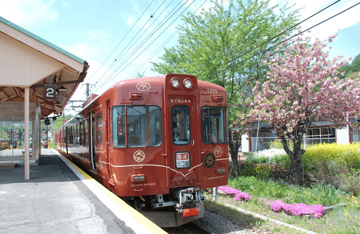 意図的に赤っぽくしたわけではない。「当社の富士登山電車と同じ“さび朱色”でカラーリングしています。特急列車ということでメタリック塗装をしたことで確かに赤っぽく見えますね」(富士急行広報)。
