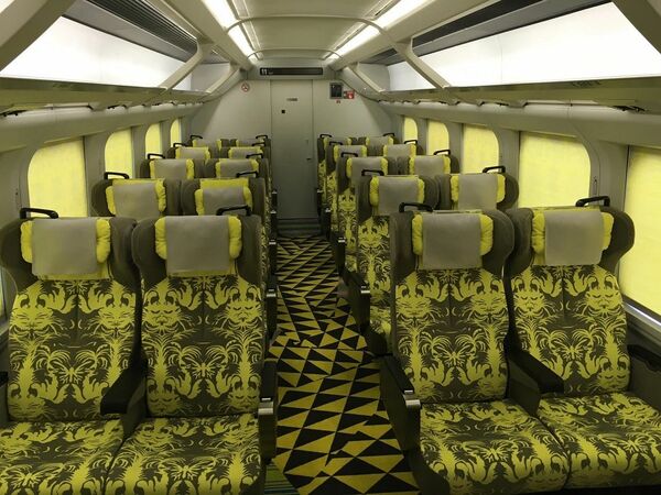 6両編成の車内は「美術館」として、松本尚、小牟田悠介、古武家賢太郎氏、paramodel、石川直樹、荒神明香、ブライアン・アルフレッドの各氏による絵画や彫刻、写真などの作品が展示されている。その代わりに、乗車定員を改装前の3分の1程度の105人まで減らした。