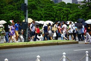 97. 皇居東御苑は外国人観光客の増加もあり、2014年に日本人を含めた年間入場者数が初めて100万人を突破