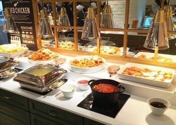 前出のららぽーと店では、“ハレの場”である大型複合施設という場所柄を考慮し、定番メニューであるチキンだけでなく、パスタ、サラダ、スープ、パンなどが食べ放題のビュッフェスタイルのレストランとした。