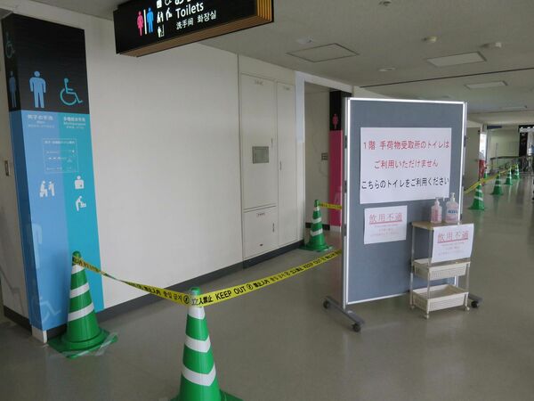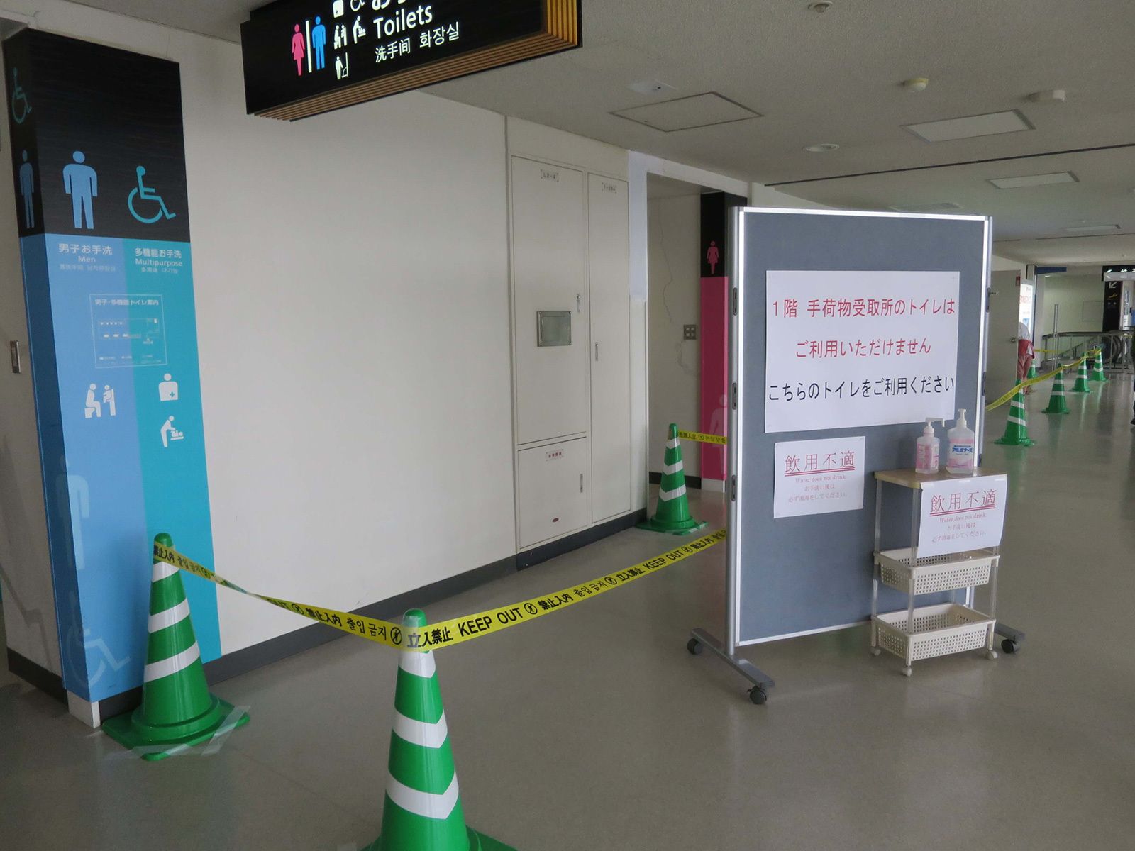 到着ロビー内のトイレは使用不能だった