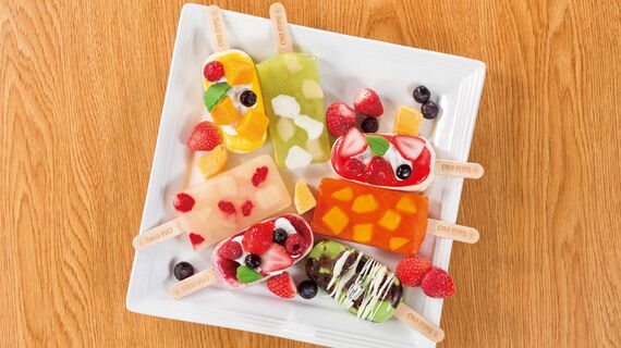 カットフルーツやホイップクリームなどを載せたカラフルなアイスキャンディ。価格は1本280~480円(税込)で、全国60カ所ほどのショッピングセンター、シネマコンプレックスなどで販売している。