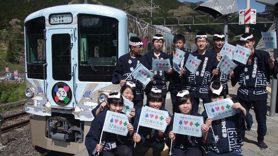 行程表にはそう書いてあったが、私は9時40分頃池袋駅に到着していた。「52席の至福」はすでに入線しており、乗車人数を超える人だかり。列車を撮るために来た人も多いのだろう。4両の車両はそれぞれ秩父の春・夏・秋・冬を表現していて、柄が違う。私も写真を撮ったり、自分の席はどこだろうと探しながら中を覗いたりしているうちに集合時間になった。
