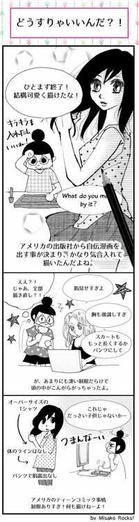 こちらでは、作者の波瀾万丈な体験を描くコミックが高い評価を得ます。「Rock and Roll Love」はまさに、私のドタバタ留学体験をもとにティーンの国際恋愛や比較文化を描いた作品。有り難いことに、ニューヨーク公立図書館が選ぶ「ベスト・ティーンズ・ブック」という賞も頂いたのですが、実は出版にこぎつけるまでに、かなり試行錯誤を重ねました。特に出版社からの要請は「え?そんなことまで突っ込んでくる!?」と驚きの連続でした。