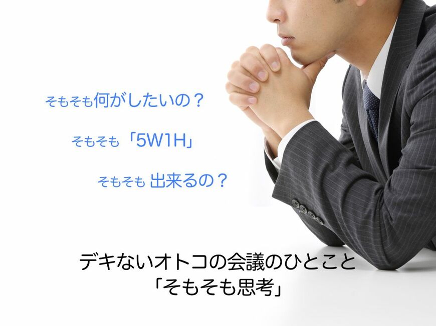 お題や解決策を確認して、穴埋め問題的に5W1Hに落とし込み、ぱっとしない「解決策」が結論になる。会議をぐずぐず化するDFDNオトコの「そもそも思考」は、学校で与えられた宿題や課題の答えを出す思考法に似ています。