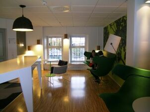 内装に限らず、エンジニアがリラックスして働ける環境の構築にも配慮を行っている。ユニークなオフィスの作り方はグーグルが有名だが、スカイプのストックホルムオフィスも受け付けのすぐ先に卓球台があったり、従業員が自由に食べ飲みできるキッチンやその近くにもカフェスペース(=左写真=)も数カ所設けられている。