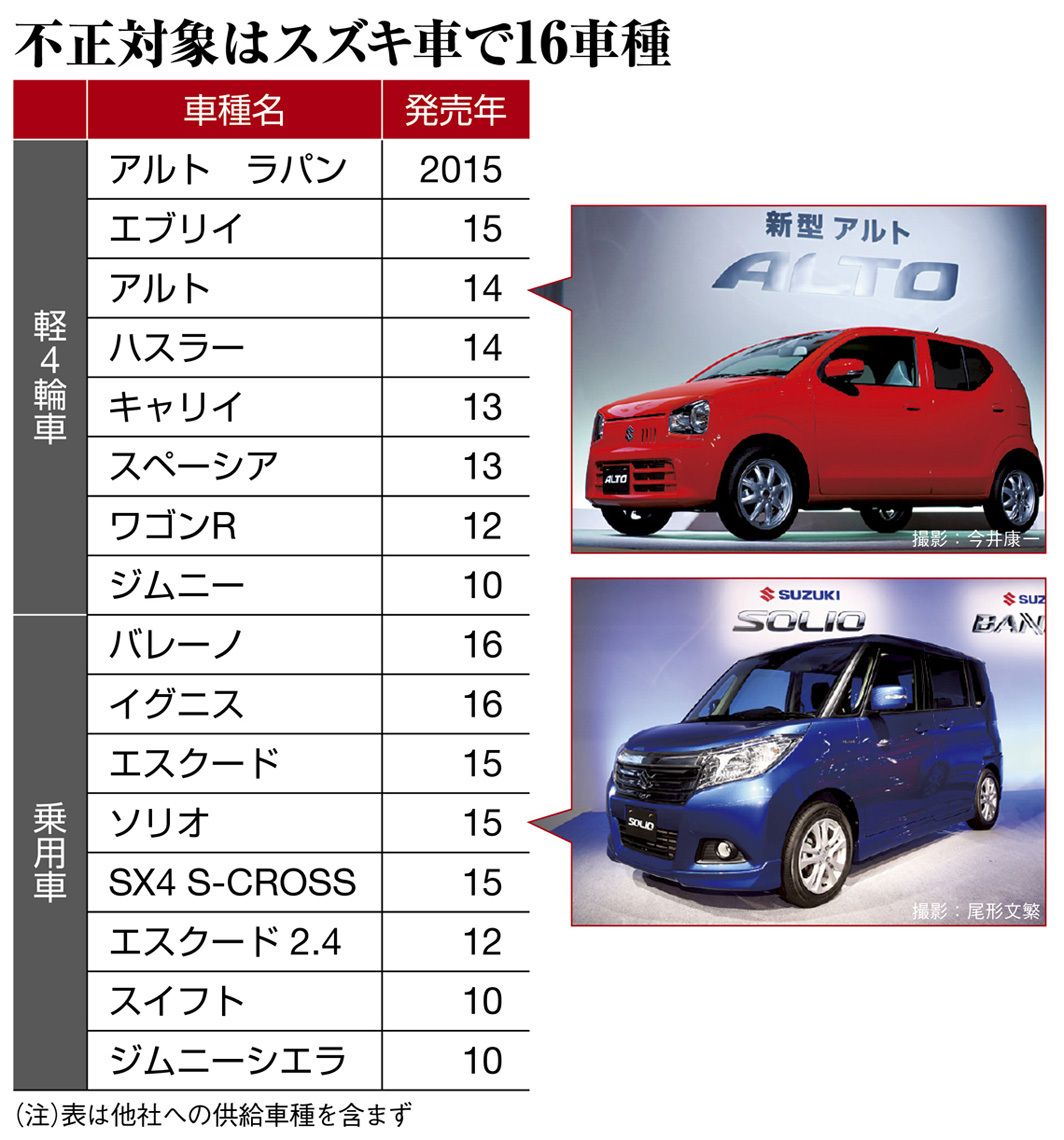 スズキよ、おまえもか。三菱自動車の燃費不正問題を受け、国土交通省は5月18日を期限として、自動車メーカーに不正の調査を求めていた。そして迎えた18日、報告した41社で唯一、スズキが不正な燃費測定方法を採用していたことを申告した。