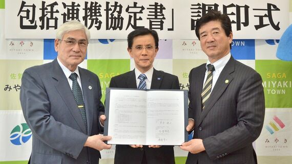 三養基郡みやき町と美容・健康食品通販最大手ディーエイチシー(DHC、本社・東京都)、新古賀病院などを運営する社会医療法人天神会(久留米市)の3者は今秋、ICTを活用した健康マイレージ制度を開始する。