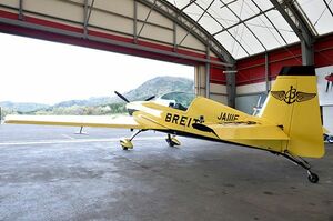 この日、同社が所有する2座のエアロバティック機「エクストラ300L」は完璧に整備されて、いつでも離陸できる状態にあったが、機体はハンガーに入ったまま。朝から続く強風で飛べないのだ。風が弱まって機体を滑走路へ出しては、また風が強まってハンガーに戻すという状態が続いた。スタッフが何度も控室に顔を出し、その度に「風が弱まらなければ飛べない可能性もあります」と申しわけなさそうに呼びかける。