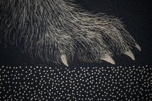 そこで、一度紙に原寸大の作品を描き、壁に張り付けて、紙に穴を空けて下絵を壁に描くことに成功した。しかしミキ氏の苦悩はここでは終わらない。「どうしてその手法を選んだのだろう?」と後悔したという。全長6メートルの作品を、細いペン先で点描していく、途方もない時間が必要な手法を作品に用いようとしていたからだ。