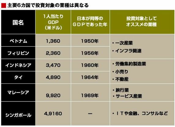 ここまで2回にわたって、地域別に見て東南アジアが世界で最も魅力的であること、そして東南アジアの11カ国のなかで、主要6カ国(インドネシア、タイ、マレーシア、シンガポール、フィリピン、ベトナム)から投資すべきことを解説してきました。今回は、各国の経済を踏まえた上でどの業種を優先して投資をすべきかについて解説をしていきます。
