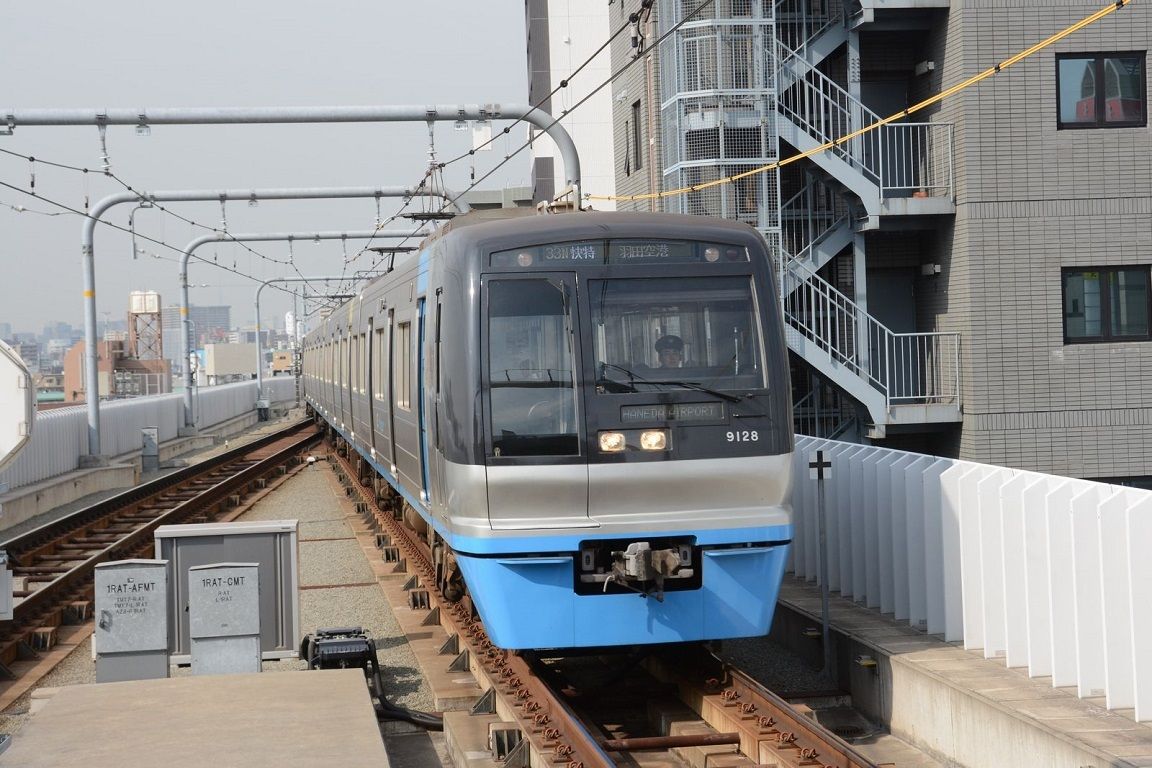 それほど新しい車両ではないけれど、9100形C-Flyerは、優等列車のような風貌で異彩を放っている。京成電鉄、都営浅草線、京浜急行に乗り入れ、もっぱら印旛日本医大と羽田空港を結ぶ快特や急行に使われている。3編成しかないので、中々出会うのは難しいが、中間車の車端部に設けられたクロスシートがユニークだ。