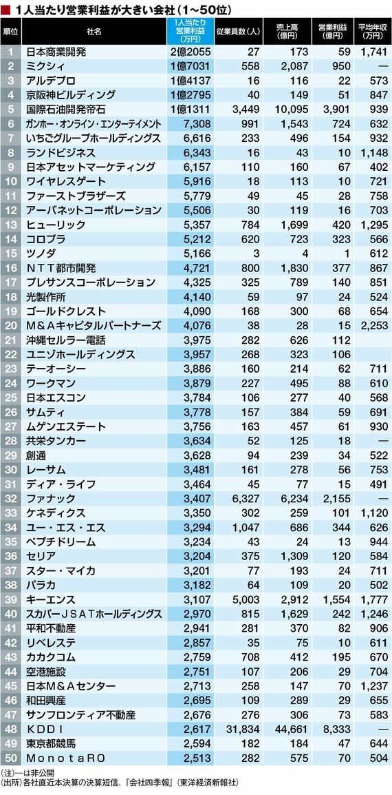 政治・経済・投資 1人当たり営業利益トップ500社ランキング 1位は2億円超、効率的に稼ぐ会社はここだ 3分で読める 公開日時:2016/07/11 06:00 東洋経済オンライン編集部 フォロー 1/11 PAGES 2/11 PAGES 次ページが続きます:【続いて51~100位】 3/11 PAGES 4/11 PAGES 5/11 PAGES 6/11 PAGES 7/11 PAGES 8/11 PAGES 9/11 PAGES 10/11 PAGES 11/11 PAGES