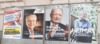 世界中のメディアが、人口850万の共和国に注目したのは4月。同国の大統領選挙で極右政党のノルベルト・ホーファー議員(写真左端)が、与党候補を大きく退けトップの座に躍り出たからだ。選出されれば欧州で戦後初の極右大統領が誕生してしまう。得票が過半数に至らず決選投票となり、連立与党の候補(写真中央の二人)はいずれも惨敗。極右候補と難民保護を訴える左派候補アレクサンダー・ファン・デア・ベレン氏(緑の党元党首・写真右端)の一騎打ち、まさに水火の争いとなった。