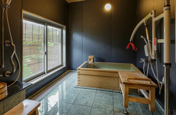 まるで旅館を思わせる檜の浴槽