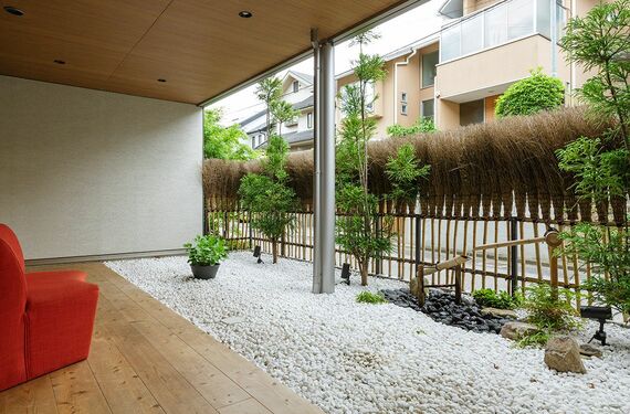 玉砂利を敷き詰めた現代風縁側
