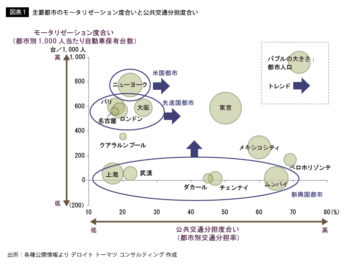 「次世代モビリティソリューション」を進めるグローバル都市のなかで、交通課題先進都市である東京が1つのモデルケースになる。この点についてもう少しくわしく見ていこう。