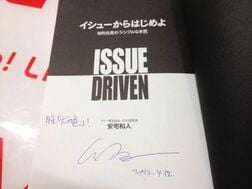 ある日、東北出張から戻ってきたとき、自分のデスクの上にあった安宅さんの本に、安宅さんの直筆サインとともに、“脱・犬の道”と書いてあることに気づいた。