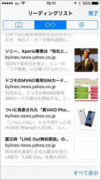 登録したリーディングリストの呼び出しは、「ブックマーク」から行う。初期状態では未読のものだけが表示されるため、既読管理も行えて便利だ。過去に読んだ記事をもう一度読みたいときは、画面右下にある「すべて表示」をタップすればいい。