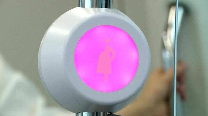 韓国で、混み合った地下鉄に乗ってきた妊婦に、スマートに席を譲ってあげられるシステムがお目見えした。妊婦が近づくと、優先席の脇に設置されたピンク色のランプが点灯するのだ。