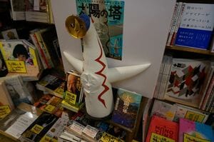 芸術家・岡本太郎関連のコーナーには、ソフトビニール製の「太陽の塔」が鎮座する。さらに、人気作家・森見登美彦のファンタジー小説『太陽の塔』まで一緒に並べるという遊び心も見せる。1990年代から、本店で売れ続けている書籍『リトル・トリー』も依然平積みだ。