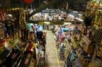 入り口は大きな倉庫の2階にある。階段を昇って、2階から入り、店舗の大半を占める1階に降りる独特の造り。フロアに降りる際に、店内をジオラマのように一望できる開放感がある。
