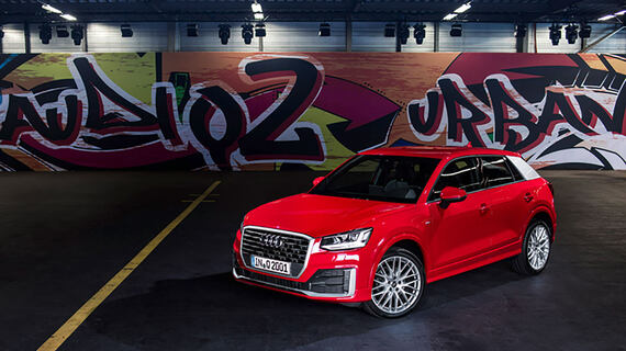 アウディ Q2は全長4.19メートルに全高1.51メートル、全幅は1.75メートルというサイズ。「Q」というアウディのネーミングコードからわかるようにSUVだ。特徴はコンパクトなこと、そして若者を大きなターゲットに据えていること。実際に試乗場所に選ばれたチューリッヒではQ2のロゴを入れたウォールグラフィティが展開され、注目されていた。