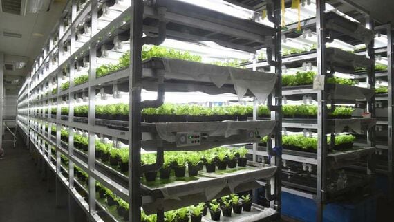 尼崎市の西端にある、阪神電気鉄道の尼崎センタープール前駅。この高架下には、ある「工場」が稼働している。二重になった扉の向こうには、白い光で照らされた棚に整然と並べられた植物が見えた。