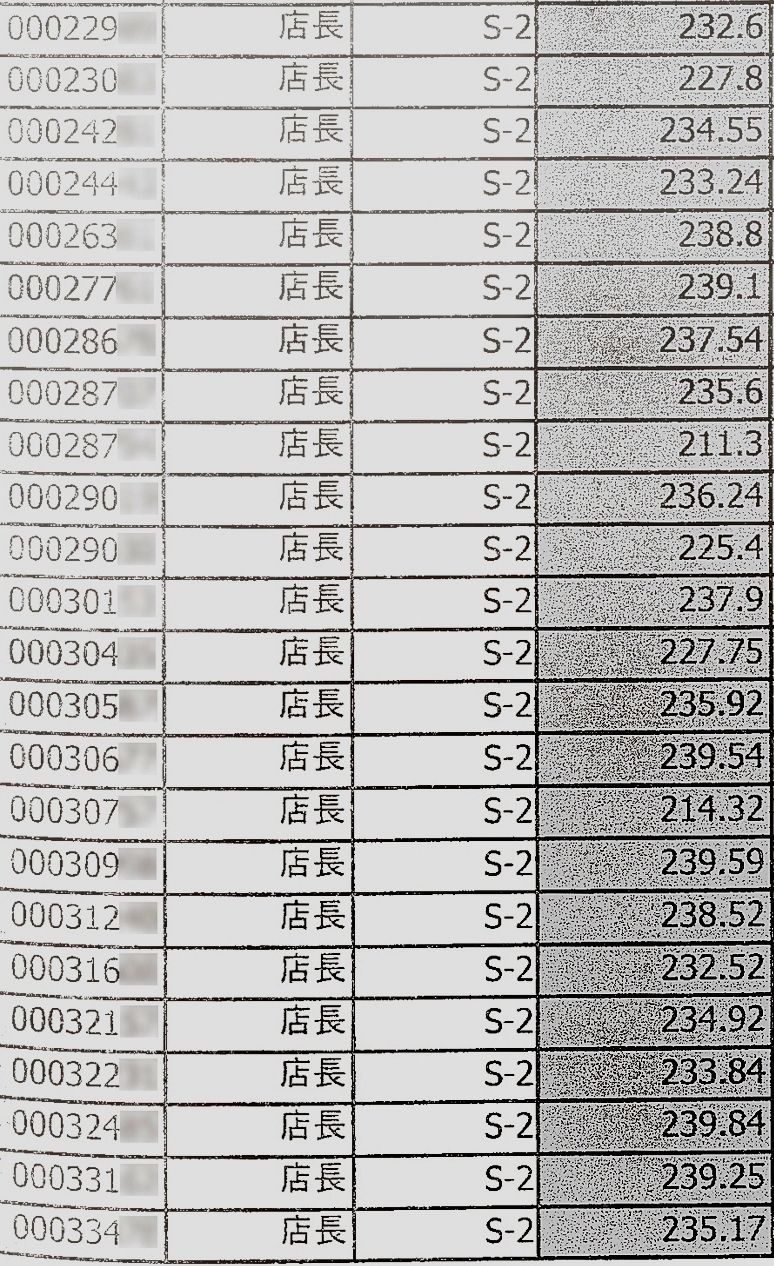 ユニクロが文芸春秋との訴訟で裁判所に提出した、2010年11月の全店長の月間労働時間一覧(下画像参照)によれば、新人店長の労働時間は、ほぼ240時間の上限ギリギリだ。