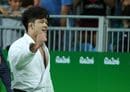 8月9日、リオデジャネイロ五輪、卓球の男子シングルス準々決勝、水谷隼(写真)がマルコス・フレイタスを4─2で制し、初のベスト4進出を果たした(2016年 ロイター/Alkis Konstantinidis)