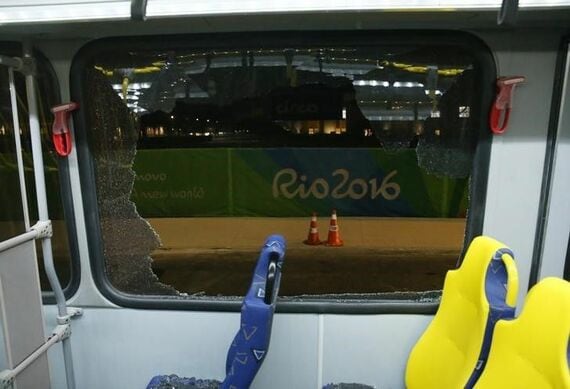 リオデジャネイロの五輪組織委員会の広報担当者は、バスが銃撃されたのか、あるいは投石だったのか、警察の鑑識が捜査していると明らかにし、「何がバスに当たったのかはまだ確認できていない。憶測では物を言えない」と述べた。現場はメーン会場から北に数キロ離れた場所だという。