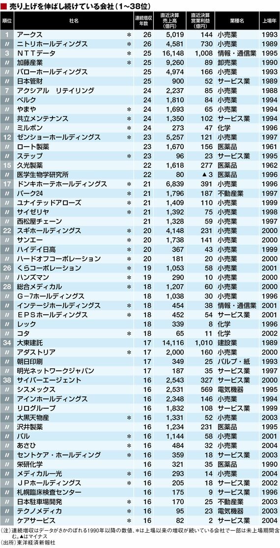 政治・経済・投資 最新!「連続増収トップ230社」ランキング 29年連続で売上高を伸ばし続ける会社とは? 3分で読める 公開日時:2016/08/12 06:00 東洋経済オンライン編集部 フォロー 1/5 PAGES 2/5 PAGES 次ページが続きます:【続いて51~100位】 3/5 PAGES 4/5 PAGES 5/5 PAGES